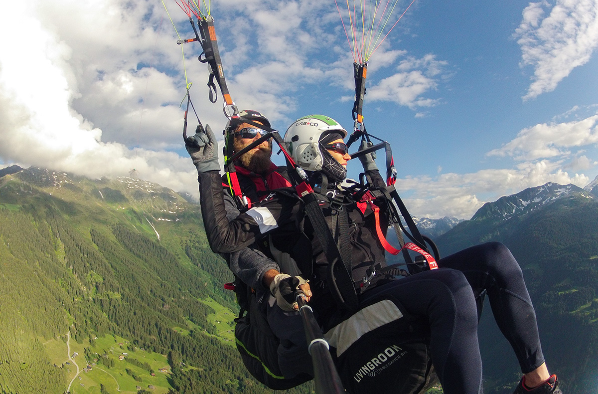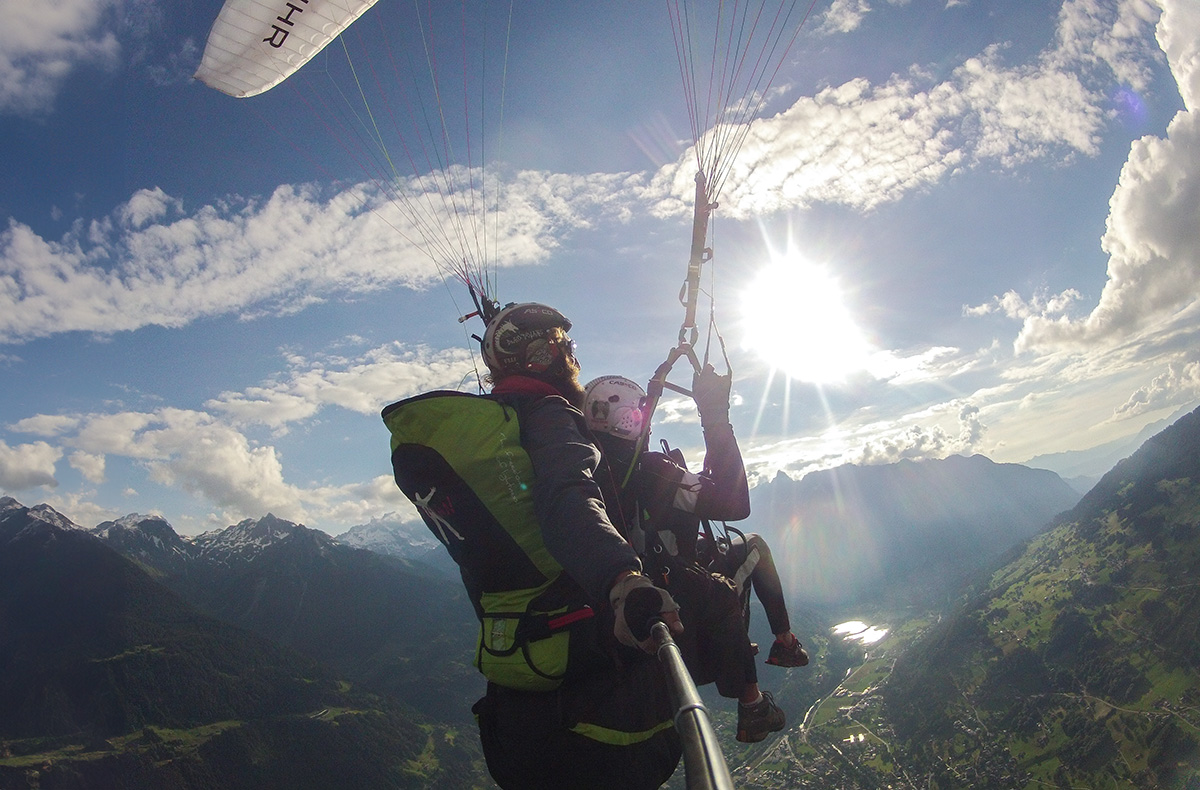 Erlebe unvergessliche Momente beim Gleitschirm Tandemflug in St. Gallenkirch im Montafon. Genieße einzigartige Ausblicke und sammle wertvolle Erinnerungen bei einem atemberaubenden Flugerlebnis.