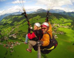 Von Wildschönau aus geht es in die Luft. Helm auf und in den Sitzgurt geschlüpft – schon bist Du bereit für Dein Flugabenteuer. Die Details des Startablaufs bekommst Du vom Piloten erklärt. Dann hängt Ihr Euch in den Paragleiter ein – nach ein paar Laufschritten füllt sich der Schirm und Ihr hebt ab. Ehe Du Dich versiehst schwebt Ihr durch die Lüfte – ein einmaliges Gefühl!