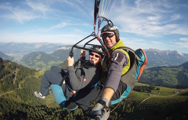 Du kennst einen Lieblingsmenschen, der die Natur liebt und die Spannung sucht? Dann überrasche ihn oder sie mit einem unvergesslichen Tandem Thermikflug in Söll.