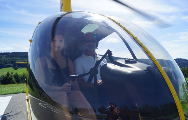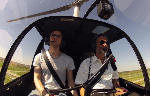 In einem Schulungshelikopter Robinson R22 hebst Du schließlich in die Luft ab. In den nächsten Minuten wirst Du merken, wie sensibel der Helikopter bei verschiedenen Flugmanövern reagiert. Genieße das Gefühl des Fliegens und übernimm das Steuer. Solltest Du Hilfe benötigen, hat der Pilot jederzeit die Möglichkeit über ein doppeltes Steuer einzugreifen.