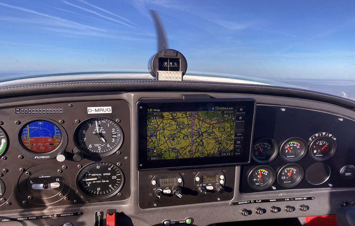 Gemeinsames Festlegen der Route (gen Norden oder Nordwesten, ab Forchheim steigend auf 9.500 Fuß bzw. 2,896 km Flughöhe)