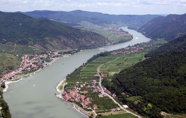 Warum solltest Du genau ab hier fliegen? Die Flugroute führt Dich über die Wachau, dies ist eine besonders sehenswerte Landschaft in Niederösterreich, nämlich das Tal der Donau. So entdeckst Du bei dem Wachaurundflug das Schloss Schallaburg, das Stift Melk und die Ruine Aggstein. Weiter fliegst Du über die Orte Spitz, Dürnstein, Dunkelsteinerwald und Maria Langegg. Nachdem auch noch das Stift Göttweig und die Ruine Hohenegg besichtigt wurden, erfolgt die sichere Landung nach dem 50-minütigen Hubschrauber Rundflug.