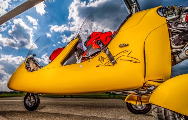 Am Flugplatz in Schmidgaden angekommen, wirst Du bereits von einem ausgebildeten Piloten erwartet. Zusammen begutachtet Ihr den Tragschrauber und der Experte vermittelt Dir die Grundlagen des Tragschrauber Fliegens. Weiterhin erhältst Du spannende Informationen, beispielsweise dass dank der speziellen Konstruktion nur eine kurze Strecke für Start und Landung benötigt wird. Bevor Du allerdings abheben kannst, bekommst Du noch eine Sicherheitseinweisung – safety first!