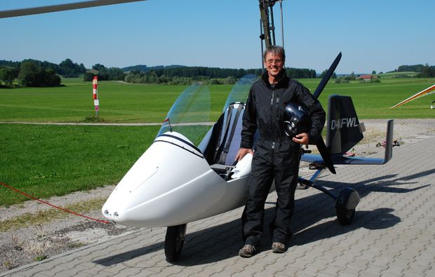 Ca. 30-minütiger Tragschrauber-Rundflug gemäß gemeinsamer Flugplanung (z.B. über lokale Sehenswürdigkeiten, Wohnorte, etc.)
