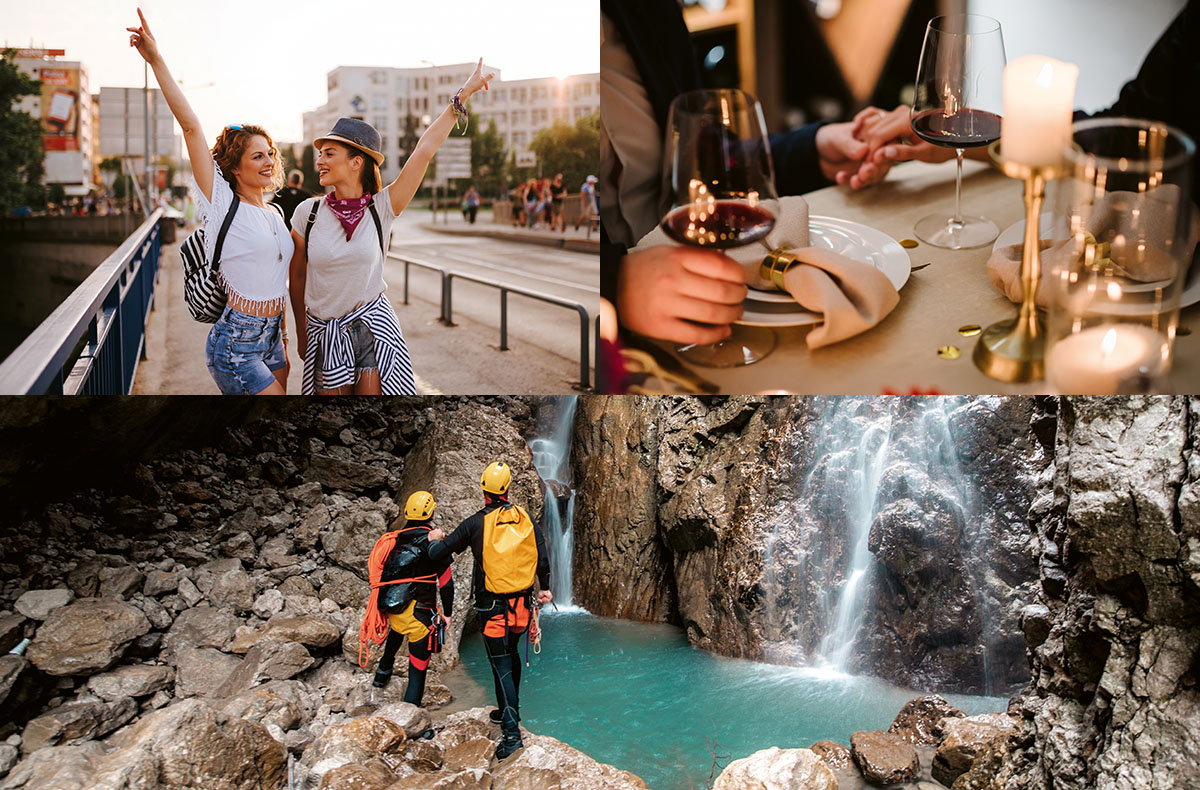 - Beispielerlebnisse: Canyoning, Städtetrip, Candle-Light-Dinner, verschiedene Massagen, Bogenschießen