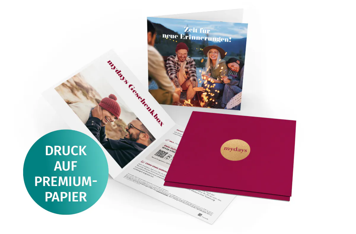 Kein passendes Erlebnis dabei? Mit dem Wertgutschein in dieser Box kannst Du die Erlebniswelt auf mydays.de erkunden und einfach Dein gewünschtes Ticket auswählen.