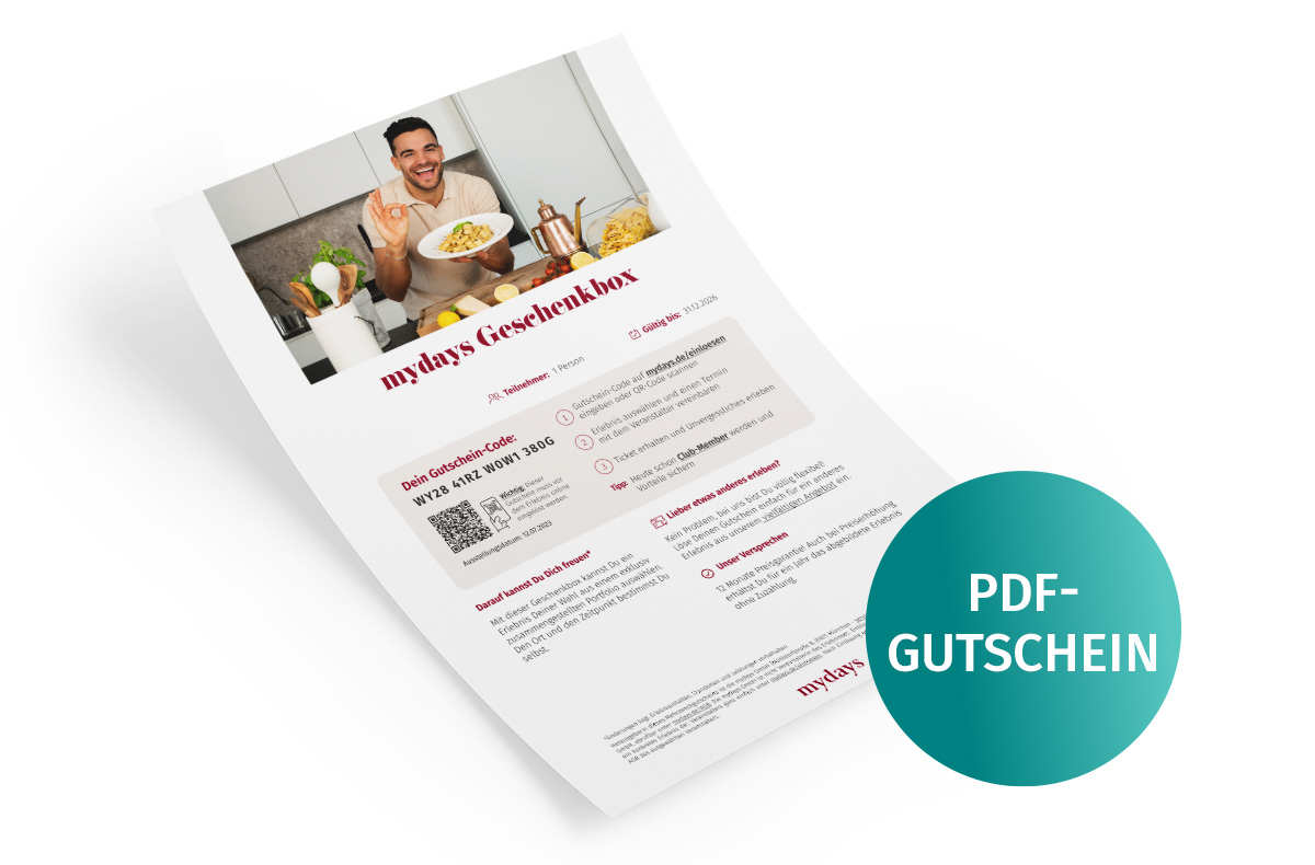 Flexible Orts- und Terminwahl nach Verfügbarkeit. Änderungen bzgl. Erlebnisauswahl und Standortverfügbarkeiten vorbehalten.