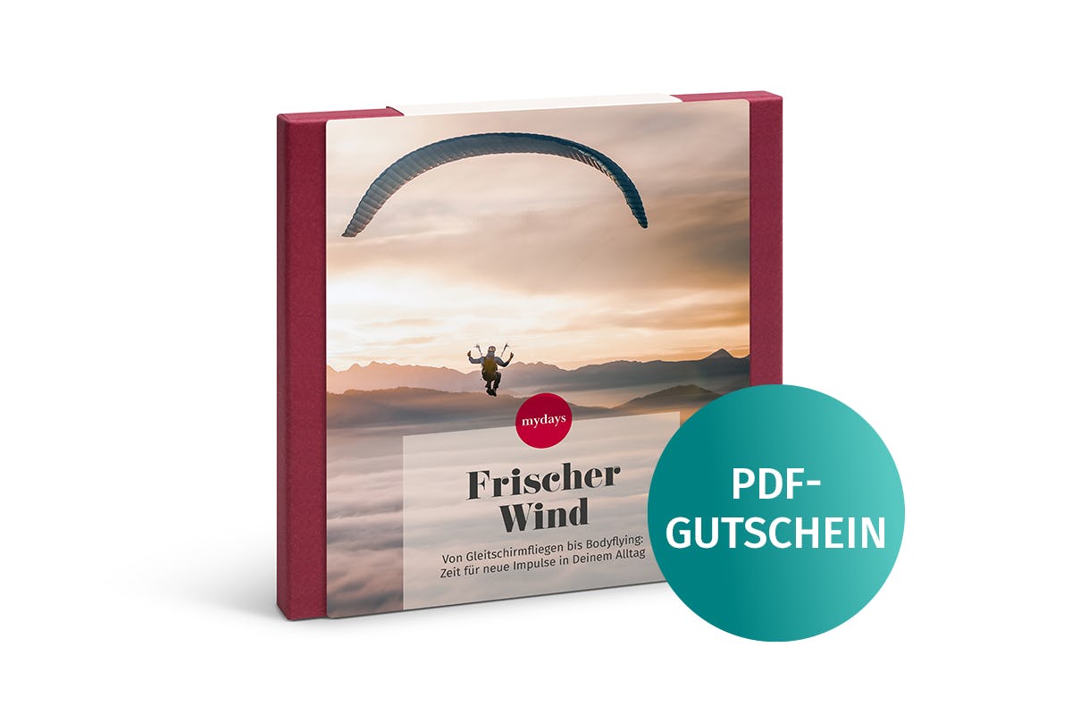 Deckel aufklappen und frischen Wind in den Alltag bringen. Das verspricht die Geschenkbox Frischer Wind. Ausgewählte Erlebnisse wie Gleitschirmfliegen, Bodyflying oder Bungee-Jumping bringen Herzklopfmomente der aufregenden Art. Das Beste daran? Die positive Energie wird für lange Zeit zum treuen Begleiter.