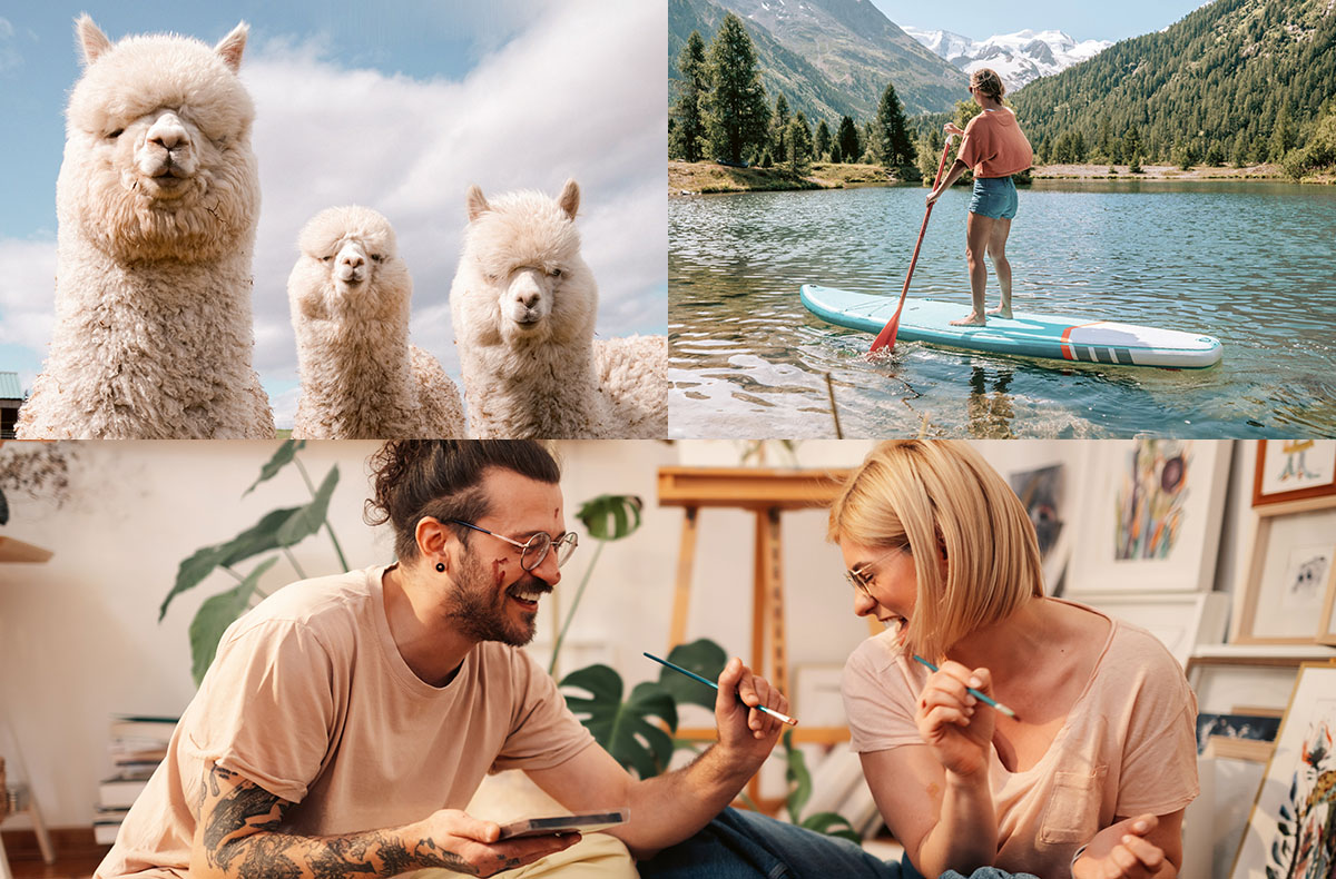 - Beispielerlebnisse: Alpaka Wanderungen, Massagen, Iris Fotoshooting oder Paint your Partner