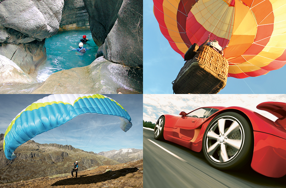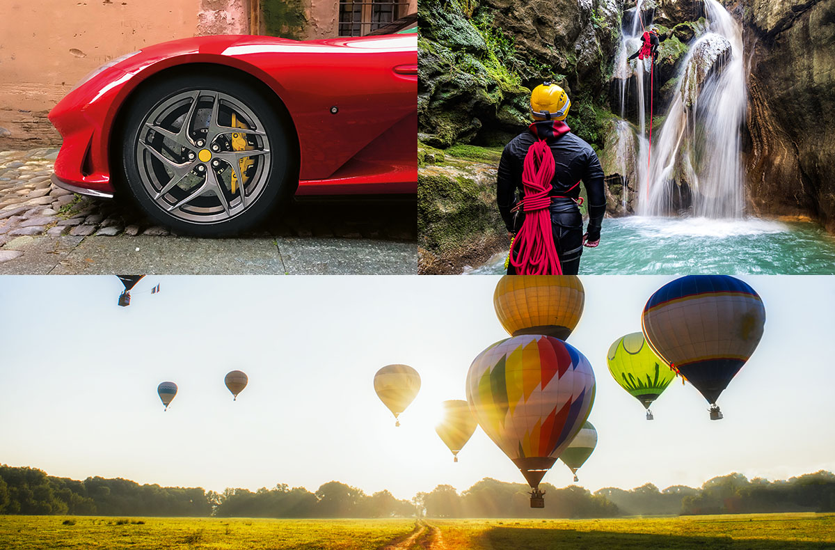 - Beispielerlebnisse: Flugzeugrundflug, Ballonfahrt , verschiedene Sportwagen fahren