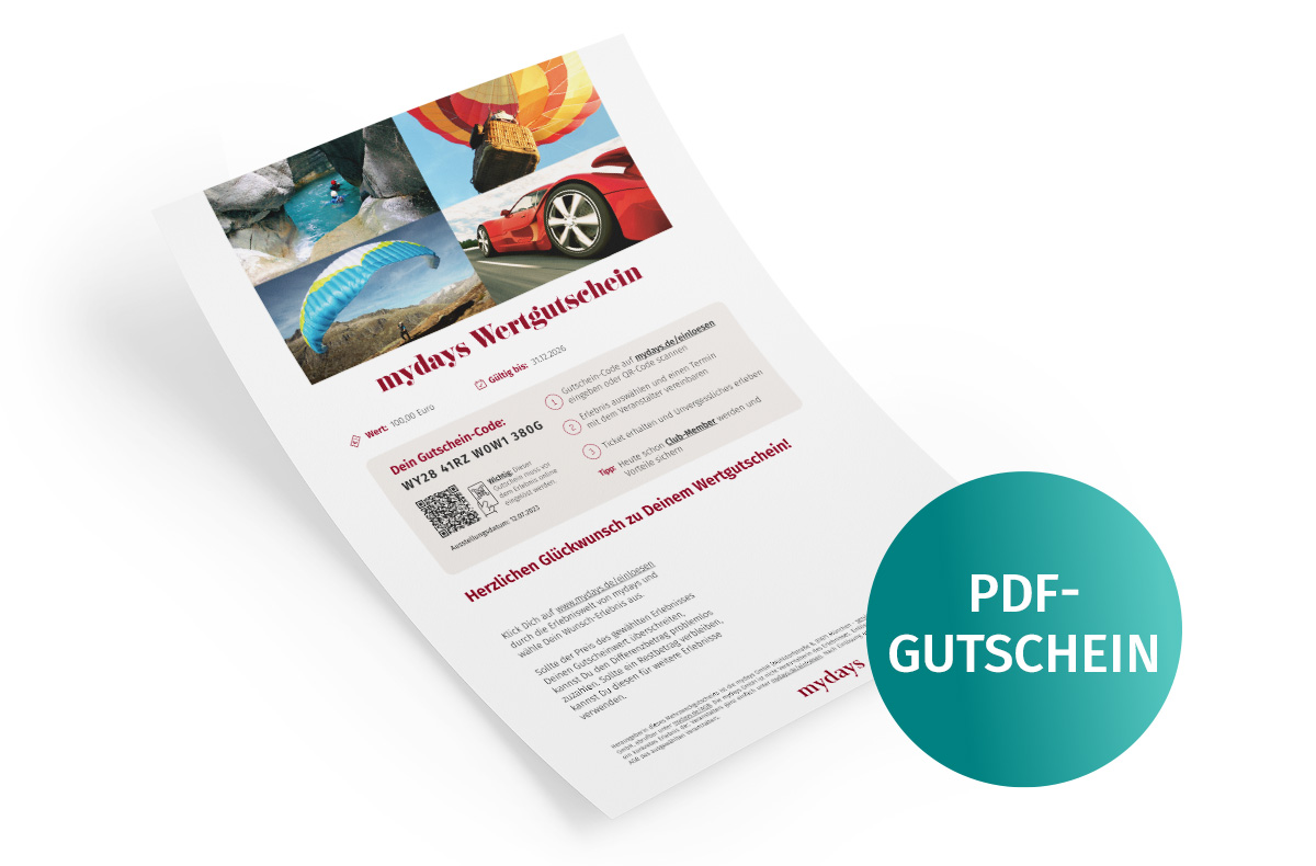 Kein passendes Erlebnis dabei? Mit dem Wertgutschein in dieser Box kannst Du die Erlebniswelt auf mydays.de erkunden und einfach Dein gewünschtes Ticket auswählen.