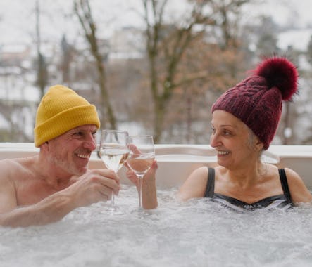 - Alleinnutzung (keine anderen Gäste) des sichtgeschützten, abschließbaren Wellnessbereichs (mit Bubble)