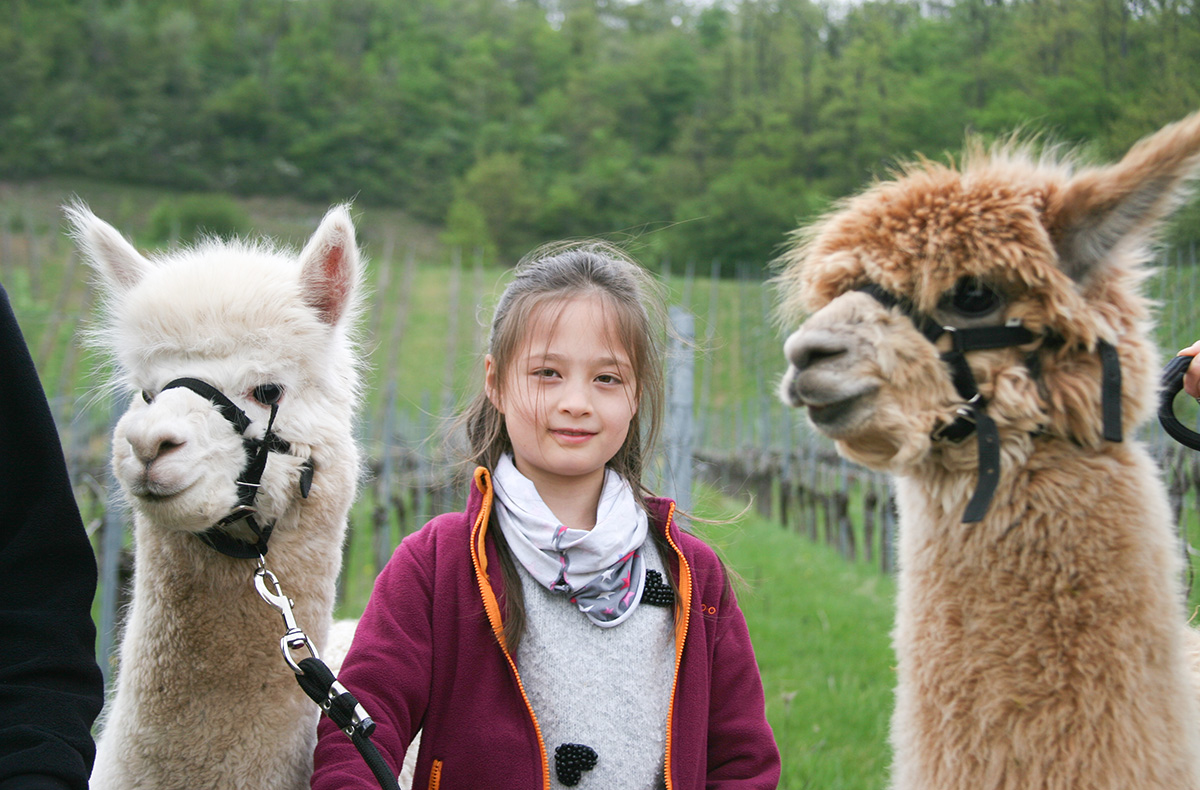 - Alpaka-Wanderung auf befestigten oder unbefestigten Wegen