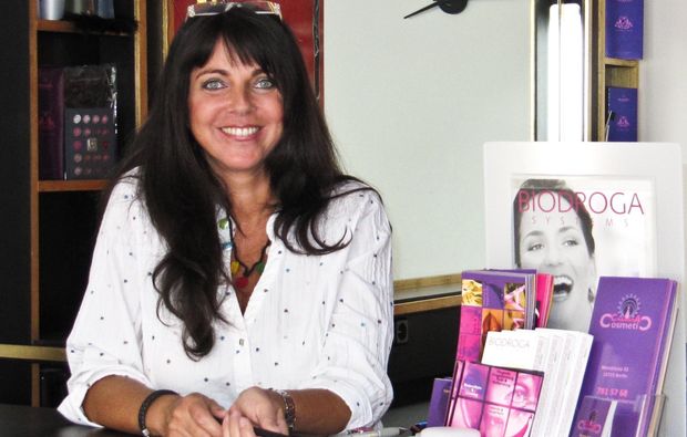- Eine Hälfte schminkt der Profi, die andere du selbst