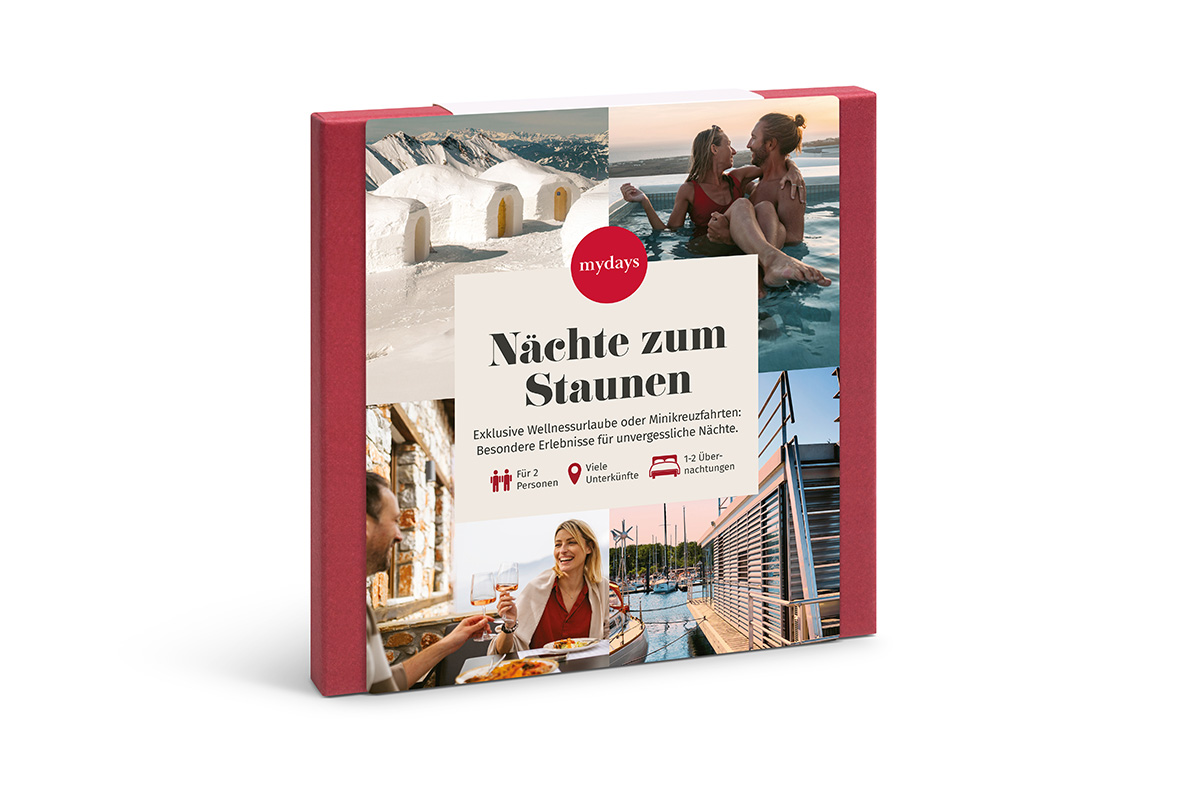 - Beispielerlebnisse: Glamping, Wellnessurlaub, Minikreuzfahrt