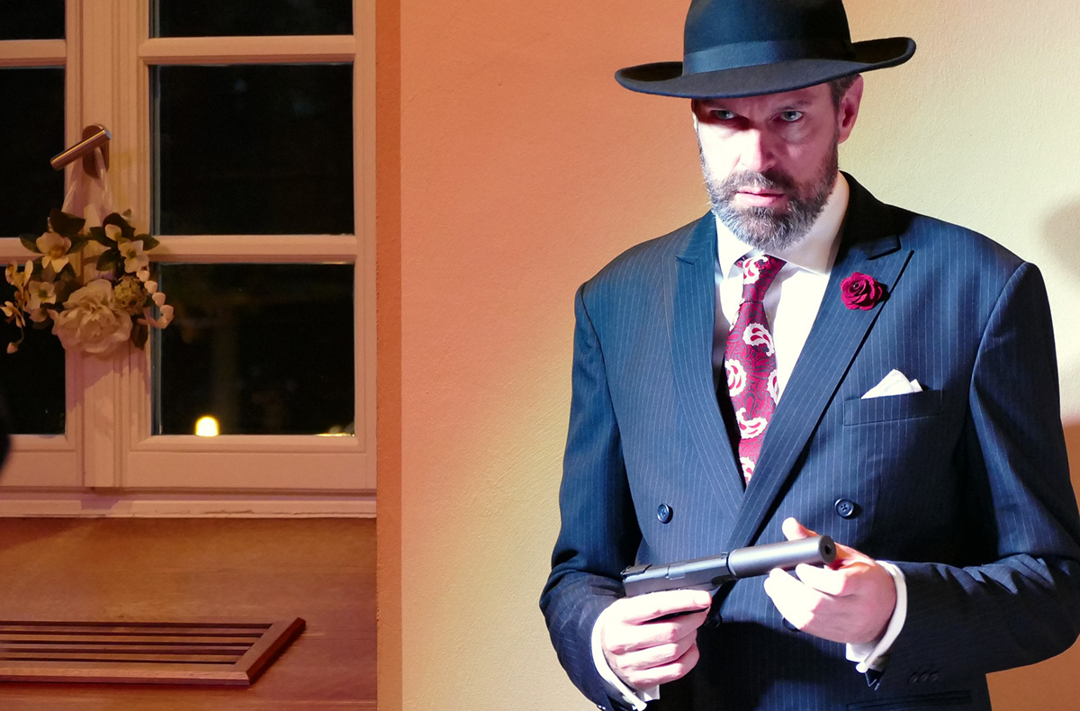 Ein drei- bis vierstündiger Abend mit spannendem Kriminalfall, den es zu lösen heißt. Weil es sich mit leerem Magen nur schwer denken lässt, wird Dir ein köstliches Vier-Gänge-Menü serviert. Nutze die Pausen zur Stärkung und tausche Dich mit den anderen Teilnehmern aus. Geschickt wirst Du in den Akt mit einbezogen und wirst zum Mitspieler und Mitwissenden.