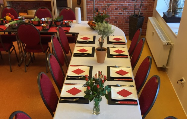 Ein wichtiges Element der chinesischen Küche sind natürlich auch die Gewürze. Beim Asiatisch kochen lernen in Köln lernst Du die verschiedenen Geschmacksrichtungen kennen und erfährst, wie Du sie zu einem balancierten Gericht kombinierst. Die richtige Mischung aus süß und sauer, herb und salzig macht Deine Kreation perfekt. Bei der anschließenden Verkostung erwartet Dich ein echtes Geschmacksfeuerwerk! In gemeinsamer Runde mit Deinen Küchen-Kollegen genießt Du das Ergebnis Eurer Arbeit. Wie fällt Dein Urteil aus? Was ist Dein Lieblingsgericht?