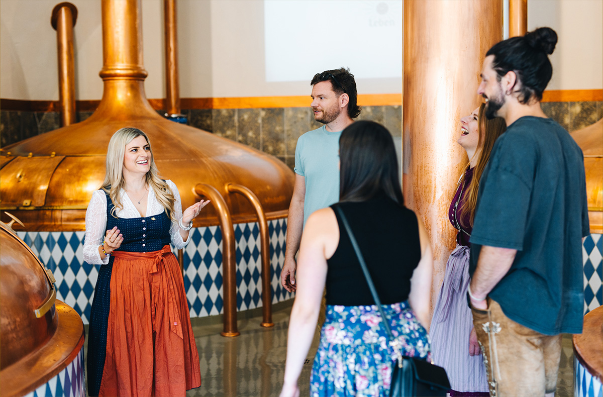 Du bist heute im oberbayerischen Traunstein. Der perfekte Ausgangsort, um sich mit dem Reinheitsgebot des bayerischen Genussgetränks vertraut zu machen. Bevor Du Deine Geschmacksknospen beanspruchst, geht’s um Theorie. Wie wird Bier gebraut, welche Schritte sind notwendig und wie sieht es in einer Brauerei aus? All das erfährst Du bei Deiner persönlichen Führung durch das Brauhaus. Darüber hinaus erfährst Du im frisch eröffneten Brauereimuseum alles über die bewegende Geschichte bayerischer Brauereien und Wirtshäuser.
