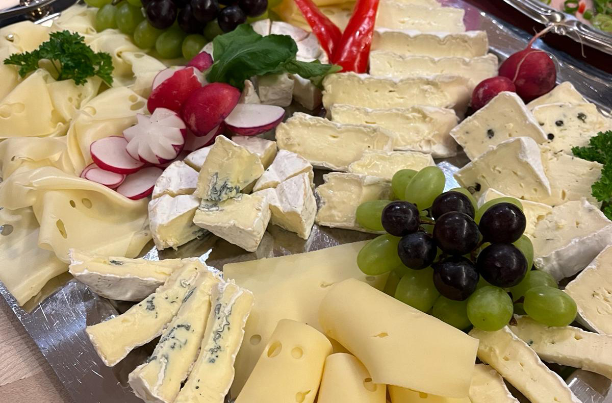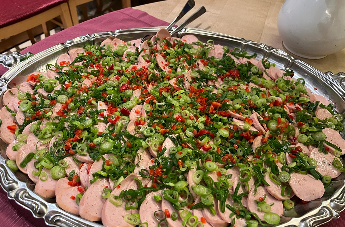 Große Auswahl eines reichhaltigen fränkischen Brotzeitbuffets - dieses enthält auch vegetarische Köstlichkeiten