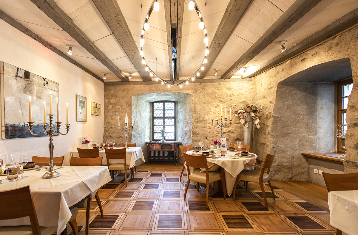 Das Restaurant ist ausgezeichnet mit 14 Gault Millau Punkten und wird im Guide Michelin, dem Guide Bleu sowie dem „Schlemmer Atlas“ präsentiert