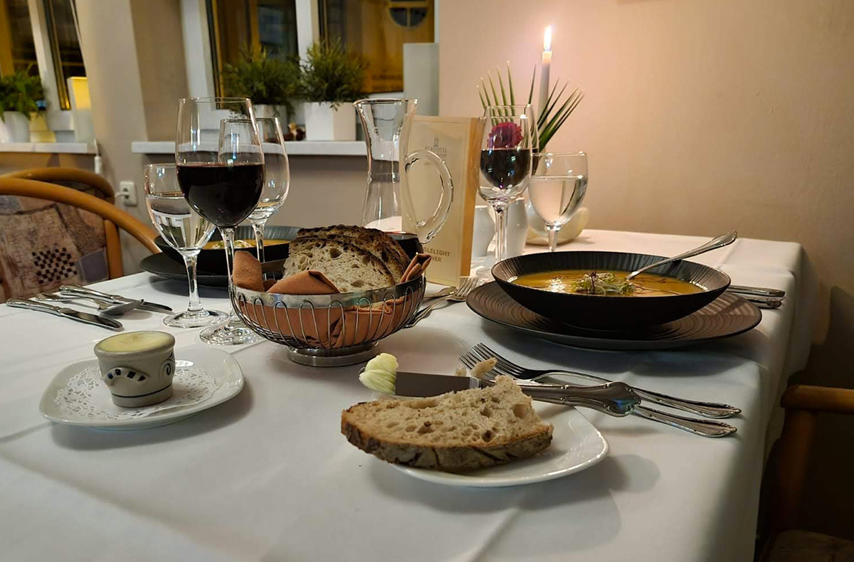 Ja, Du kannst nach Voranmeldung wahlweise auch ein vegetarisches Menü bestellen.