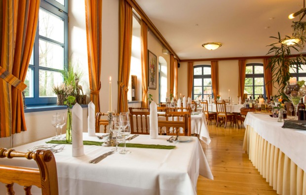 Im Restaurant Schaumburger Ritter steht die Freude am Genuss an oberster Stelle. Setzt Euch an den romantisch gedeckten Tisch und freut Euch auf ein ganz besonderes Vier-Gänge Candle-Light-Dinner. Mit frischen Ideen, Charme und Können geben die Köche alles, um Großartiges zu zaubern. Wählt zwischen Fleisch, Fisch oder Vegetarisch und genießt den menübegleitenden Wein nach Wahl des Hauses.