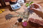 Im nächsten Schritt des Workshops gestaltest Du Dein eigenes Aroma. Wähle aus einer Vielzahl von Botanicals, mische sie und beobachte, wie sich Deine klare Flüssigkeit in einen einzigartigen Gin verwandelt. Anschließend darfst Du Deinen fertigen Gin selbst abfüllen und etikettieren, was ihm eine persönliche Note verleiht.
