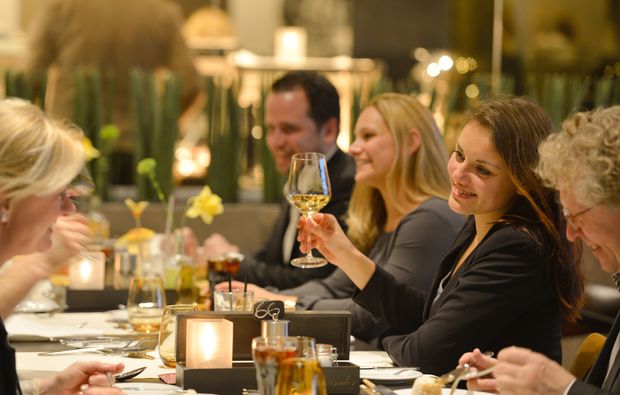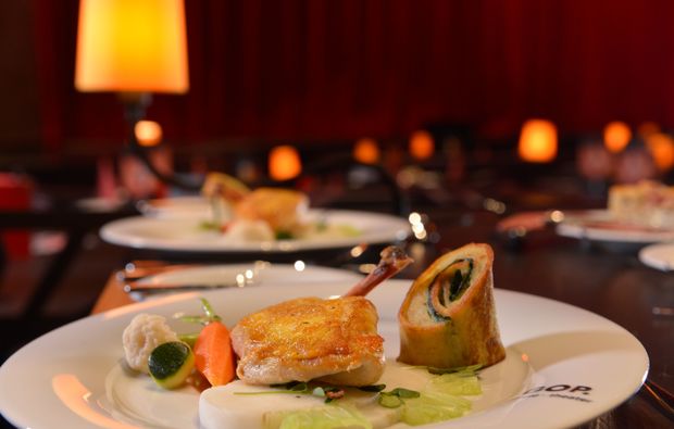 Doch natürlich ist die sensationelle Show nicht alles, was Dich im GOP Varieté-Theater Münster erwartet: Auch das stilvolle Ambiente des Theatersaals mit atmosphärischer Beleuchtung macht das Gesamterlebnis aus. Zudem wird das Abendprogramm von einem 3-Gänge-Menü umrahmt, das wohl auch den anspruchsvollsten Gaumen beglücken wird. Die Köche sind ebensolche Künstler in der Küche wie die Artisten auf der Bühne und zaubern ihre Kreationen mit frischen Zutaten und viel Liebe zum Detail. Vorspeise und Hauptgang genießt Du vor dem ersten Teil des Bühnenprogramms, das Dessert lässt Du Dir dann in der Spielpause vor dem Show-Höhepunkt schmecken. Du hast mal wieder Lust auf einen ganz und gar wunderbaren Abend, der Dir noch lange als Highlight in Erinnerung bleiben wird? Dann gönn Dir einen Abend im GOP Varieté-Theater Münster und lass Dich in andere Welten entführen!