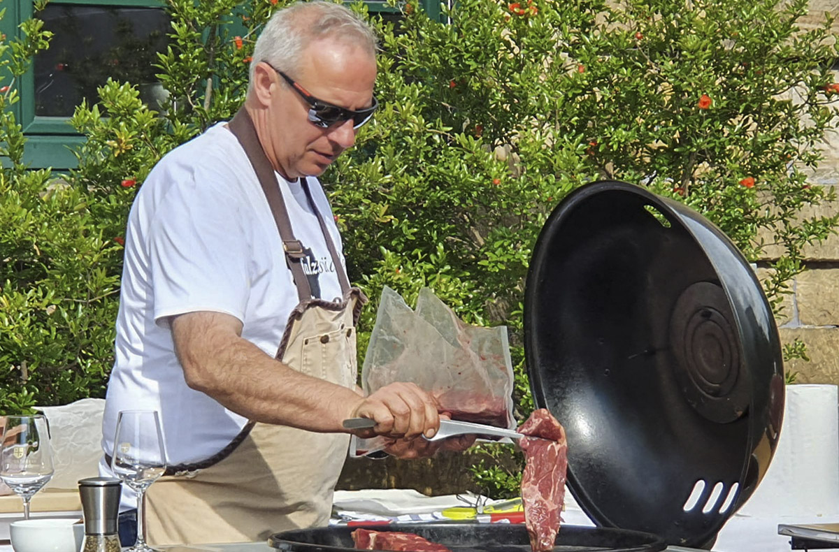 Probiere Dich an der Technik des Sous-vide-Garens und lerne die Unterschiede der Fleischqualitäten von Dry-aged, Wagyu-Beef, Onglet, Saumfleisch und Flapsteak kennen. Aus verschiedenen Steakcuts zaubert Ihr Köstlichkeiten, die Dir das Wasser im Mund zusammenlaufen lassen. Hier kommt ausschließlich Fleisch aus bester Qualität auf den Rost. Damit ist jeder Bissen ein Fest der Sinne.