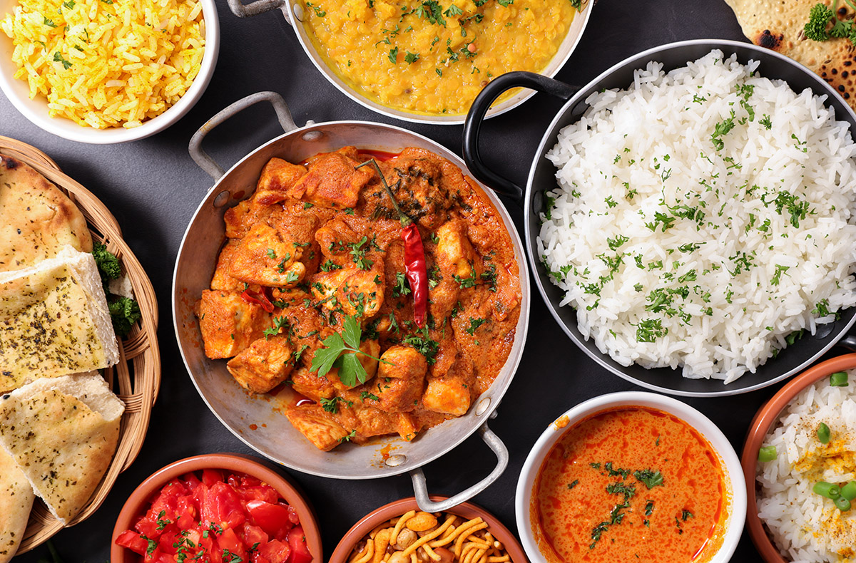 Curries gibt es in vielen verschiedenen Varianten mit Fleisch, Fisch oder Gemüse. Die Gewürzmischungen zur Zubereitung der indischen Curries werden Masala genannt und in jedem Ort anders hergestellt – von pikant oder scharf bis hin zu süß – jeder Haushalt hat sein ganz individuelles Rezept. Die Zutaten sind z.B. Kurkuma, Pfeffer, Chili, Kardamom, Koriandersamen, Ingwer, Kreuzkümmel, Muskat, Zimt und Curryblätter.