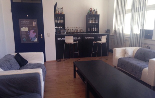 Spirituosen, Snacks, Wasser und Tastingunterlagen