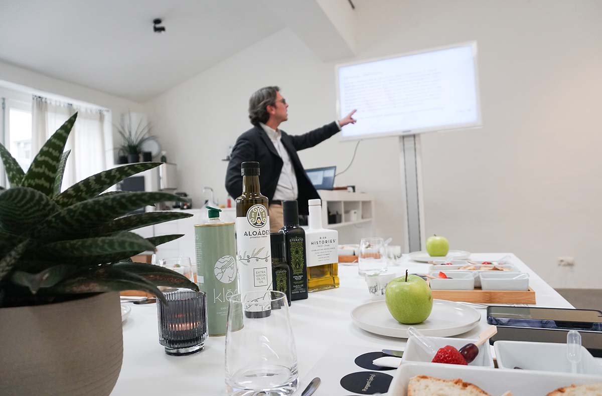 Fachlich kommentierte Verkostung von 4 bis 5 Olivenölproben