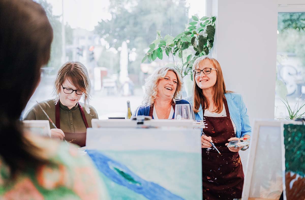 - Weinprobe mit kreativem Malkurs mit Acrylfarben und Strukturpaste