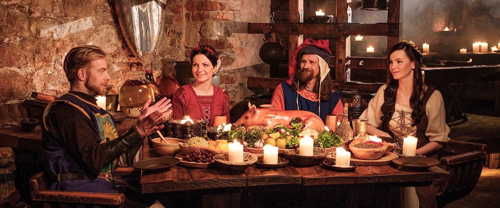 Wer sich mit dem Mittelalter ein wenig auskennt, der weiß, dass gerne geschlemmt wurde. Deine Liebsten sollten daher ordentlich Appetit mitbringen, denn beim Ritteressen erwartet sie ein deftiges 5-Gänge-Menü, das erstmal überwunden werden möchte! Wer zwischendurch eine Pause braucht, wird vom Gaukler unterhalten oder lauscht den Liedern der Barden, die ihre Laute zupfen.