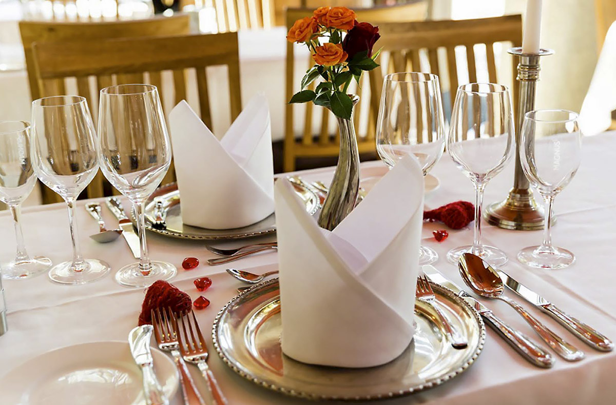 In einem edlen Restaurant verbringt Ihr diesen unvergesslichen Abend und lasst das Feuer der Liebe aufflammen. Mit Kerzen und schöner Rosendekoration auf dem Tisch erwartet Euch genau das richtige Ambiente für Eure tiefsinnigen Gespräche. Nun geht es auch schon los mit dem ersten Gericht…