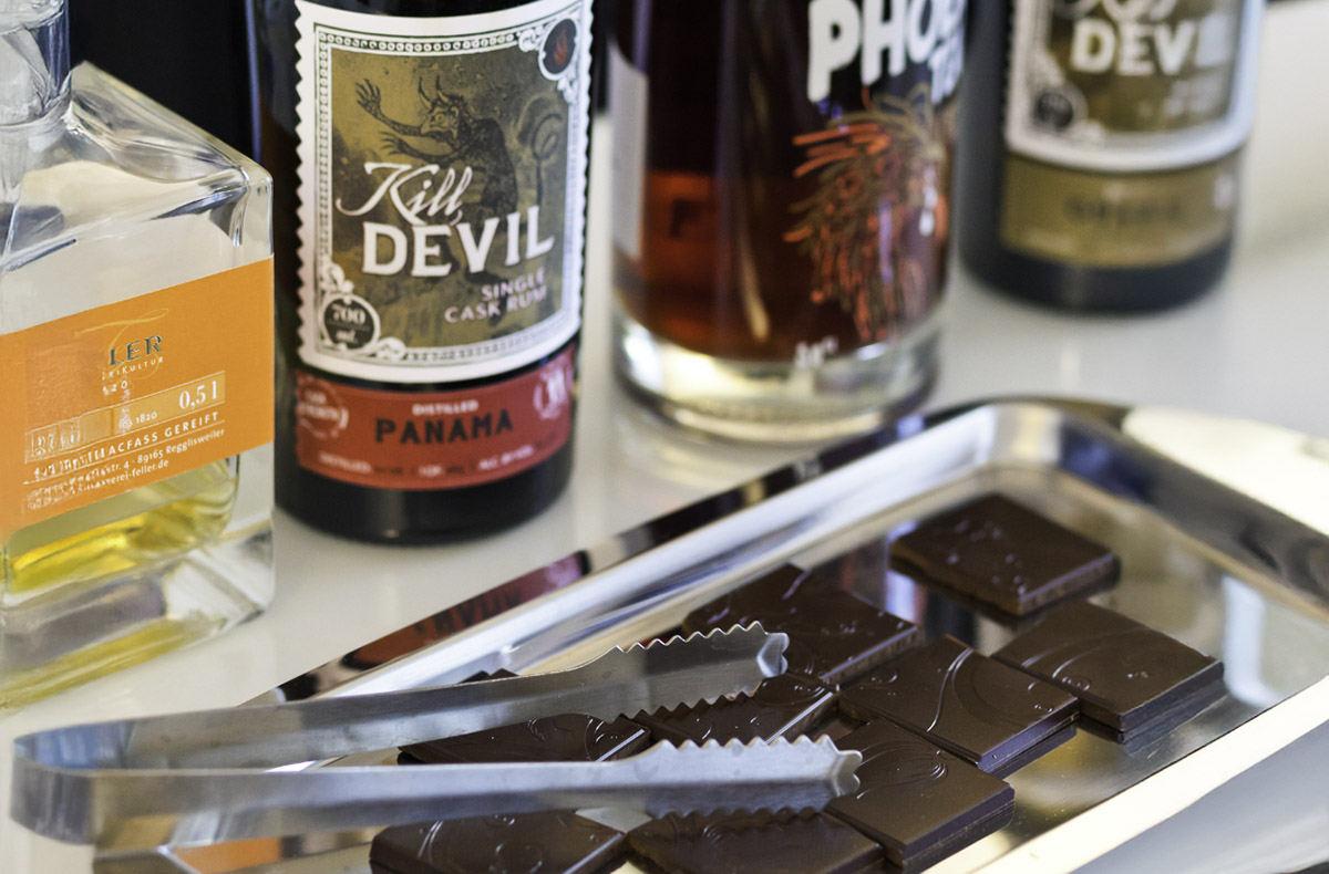 - Fachlich kommentierte Verkostung von 6 Rumsorten und 6 Schokoladensorten