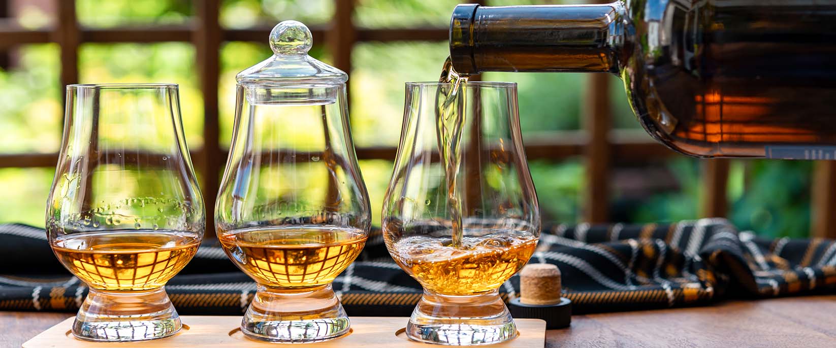 - Verkostung von 7 Whiskies im Nosingglas serviert