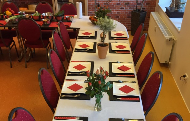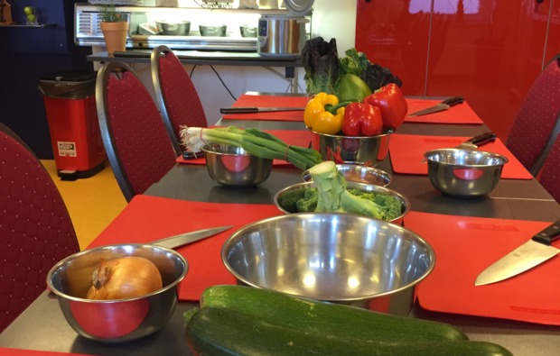 Sämtliche Kochzutaten und Utensilien zur Nutzung vor Ort