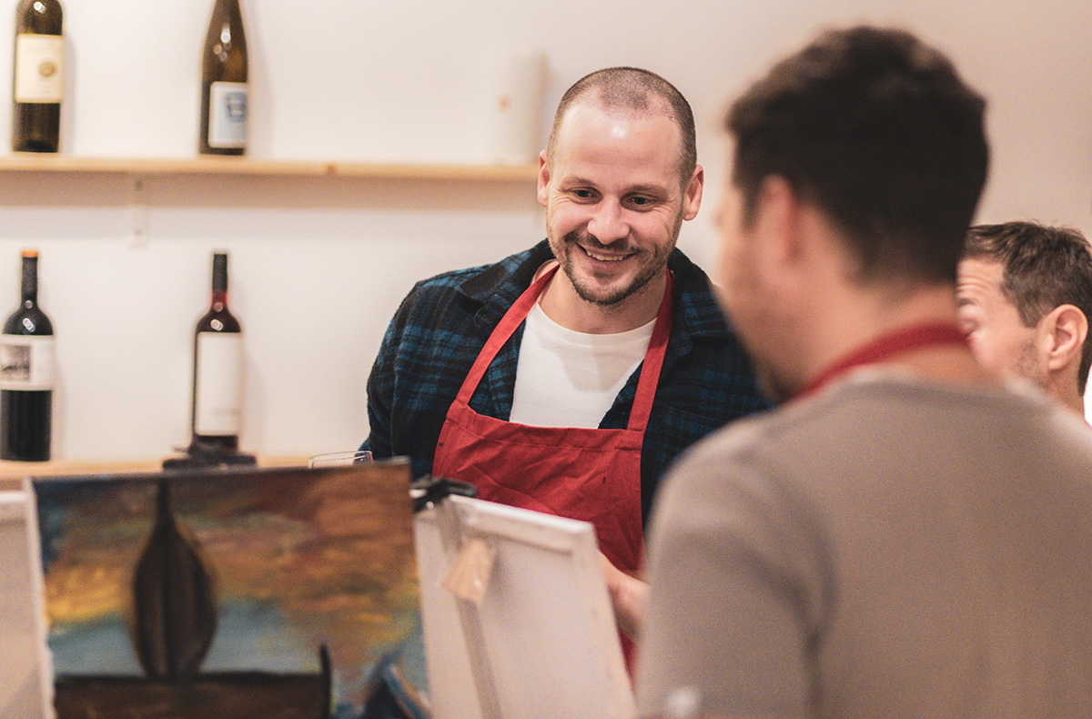 - Malsession mit Weinverkostung