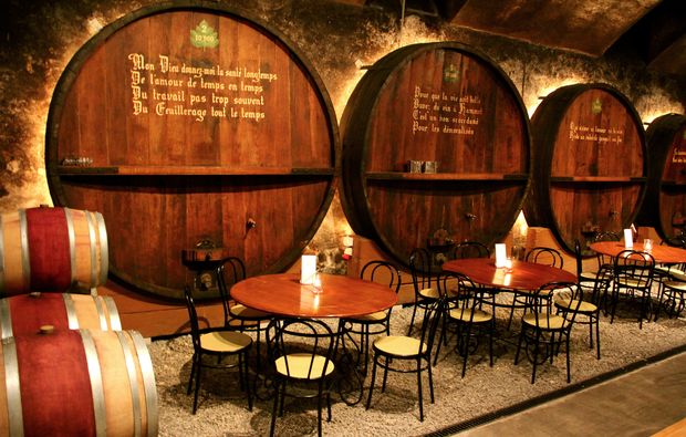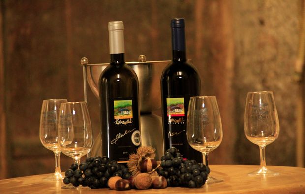 • Wein-Paket mit 4 roten Wertmarken (jeweils gültig für eine betreute Verkostung von mindestens 3 Weinen) und 1 grüne Wertmarke (einlösbar gegen eine Flasche Wein Deiner Wahl bei einem Winzer)