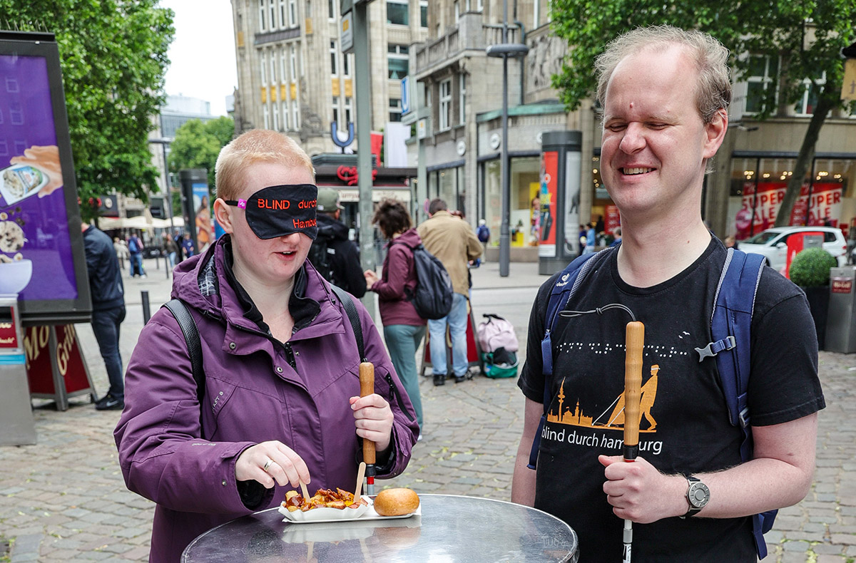Die Tour startet am Hauptbahnhof, verläuft über verschiedene Erkundungsstationen in der Fußgängerzone bis in Richtung Rathaus oder Jungfernstieg. Du merkst, wie schwierig es ist, sich im Bahnhofsgetümmel oder in der Fußgängerzone zurechtzufinden. Gut, dass Dein Tourguide direkt neben Dir ist. Finde ohne Schaufenster und Leuchtreklame heraus, in welchem Geschäft Du Dich befindest oder teste Deinen Geschmackssinn bei einer Essensprobe. Es wird spannend!