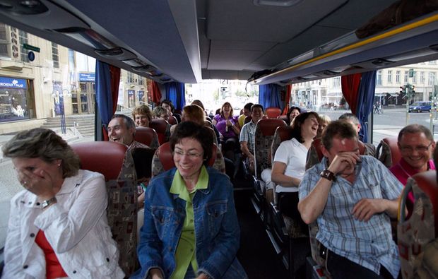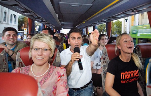 Im Comedy-Bus wirst Du zu den wichtigen Sehenswürdigkeiten chauffiert