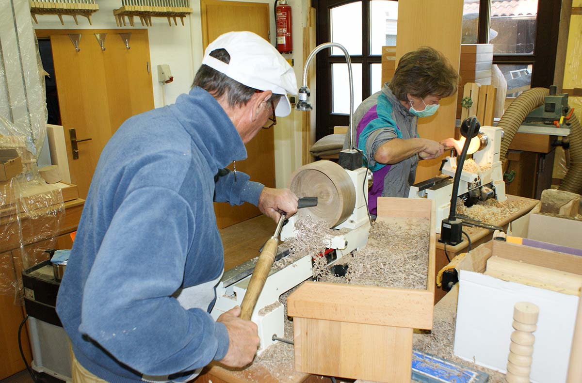 Lerne das Arbeiten an einer Drechselbank, Schärfen der Werkzeuge von Hand und mit dem Schleifsystem, sichere Handhabung und Führung der Werkzeuge, Langholz mit Drechseleisen drechseln