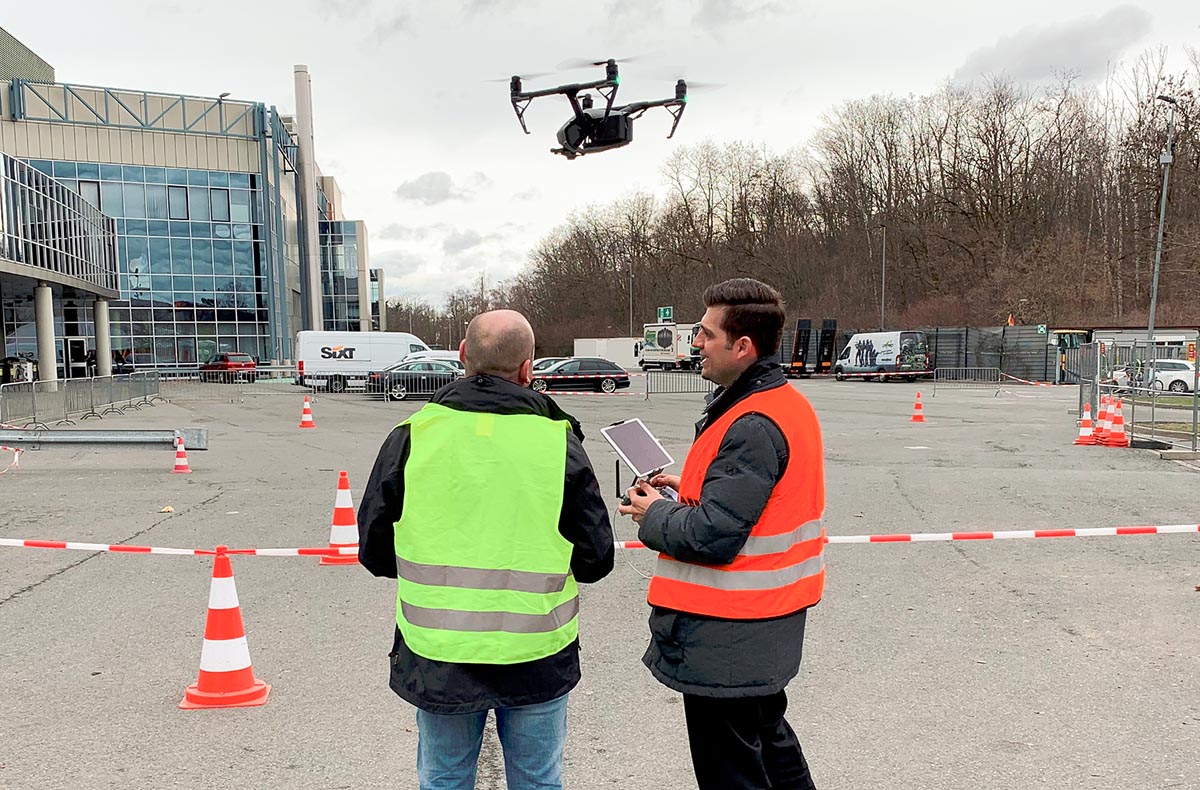 Drohnenflug auf einer Wiesenfläche mit mindestens 300 m x 300 m