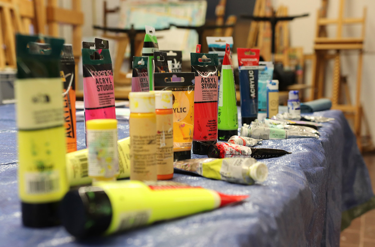 Wird gestellt: Farben, Gelplatten, Papier, Druckutensilien, Handschuhe