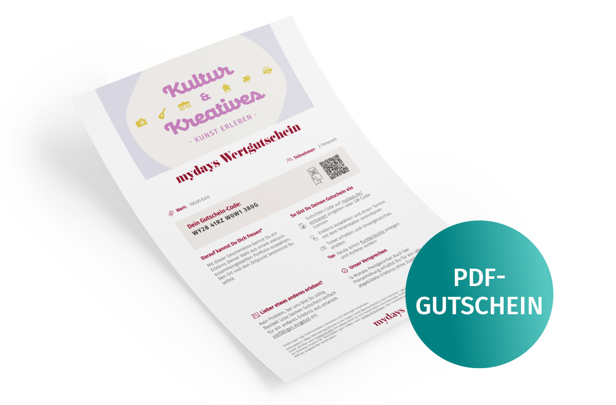 - Einlösbar in über 1900 Erlebnisse der Kategorie Kultur & Kreatives