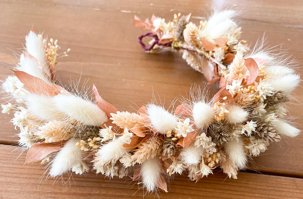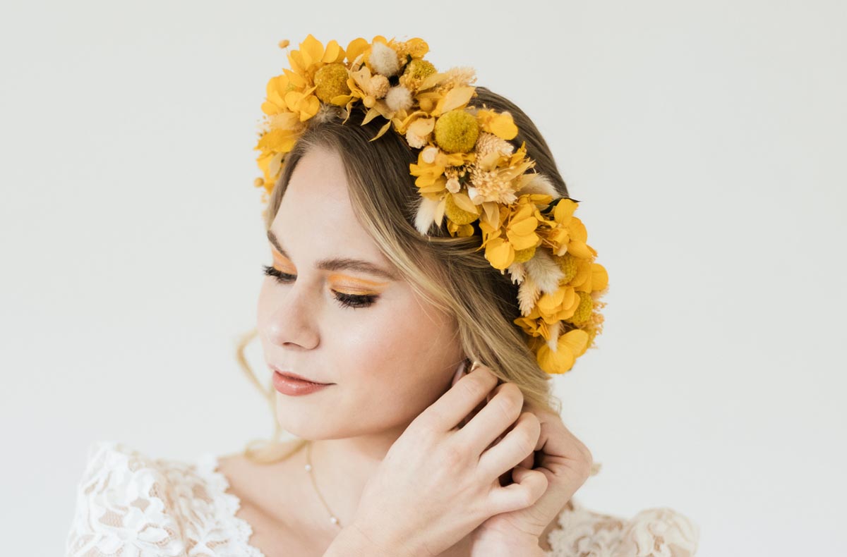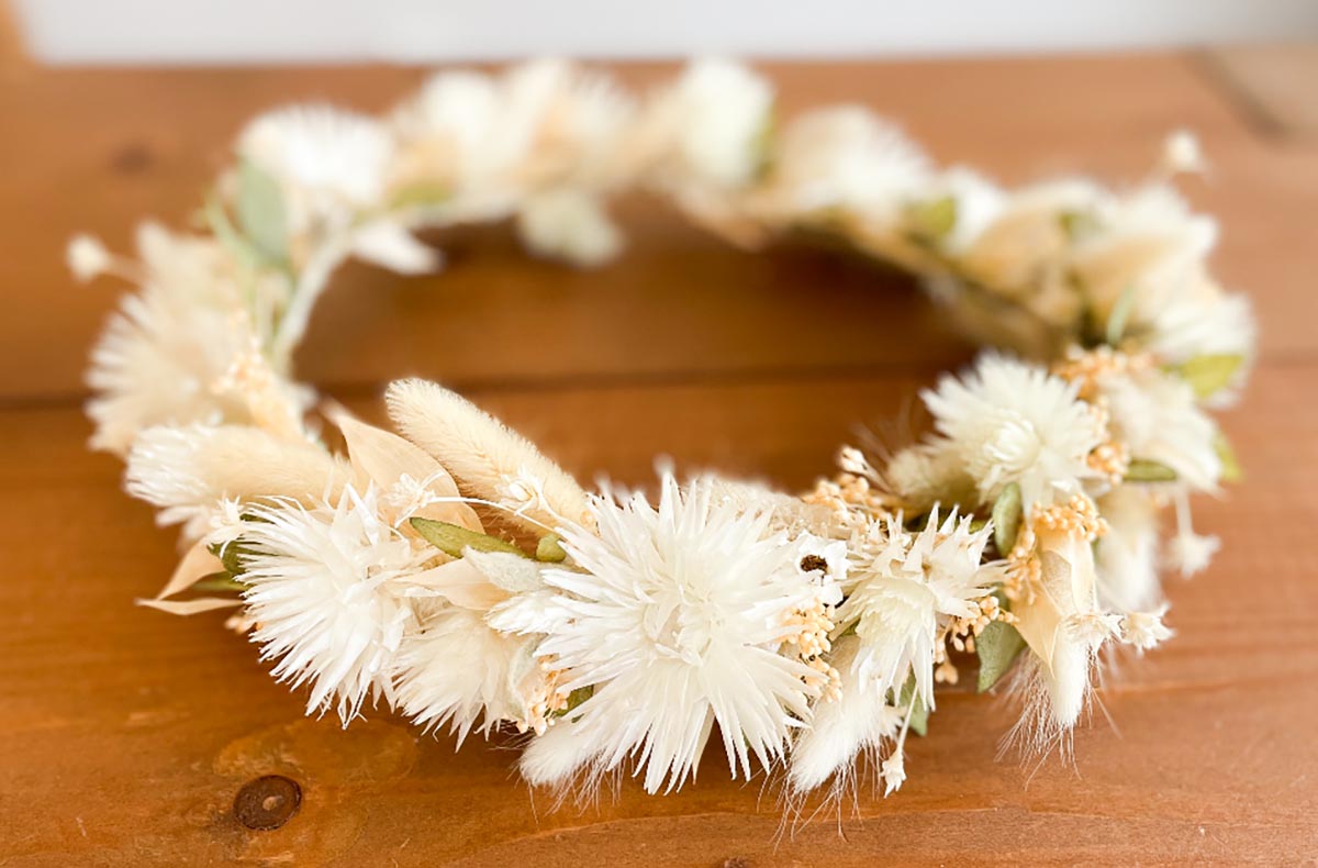 • Überblick über Trockenblumenarten, Grünwerkstoffe, Draht, Bindebänder und Feinschnittwerkzeuge