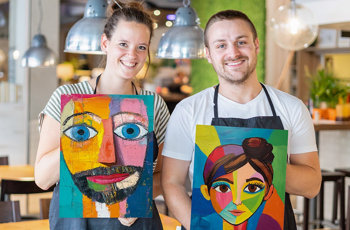Ein Pinselstrich sagt manchmal mehr als tausend Worte – genau das zeigt Dir das Erlebnis Paint Your Partner. Unter Anleitung eines erfahrenen Kursleiters malst Du Deinen Partner oder Deine Partnerin. Dafür kannst du deinen Lieblingsmenschen entweder von einem Foto abmalen oder Ihr sitzt Euch live gegenüber und lasst Euch von diesem besonderen Moment inspirieren. Wichtige Info an dieser Stelle: Der Gutschein ist für eine Person. Solltet Ihr Euch also gegenseitig malen wollen, müsst Ihr einen zweiten Gutschein erwerben. Natürlich kannst Du aber auch ein Selbstportät von Dir malen. Hier entstehen nicht nur bunte Porträts, sondern vor allem echte, emotionale Erinnerungen. Alle Materialien, die Du zum Malen braucht, stehen bereit – Leinwände, Farben, Pinsel und Inspiration inklusive. Probiere Dich aus und lasse Deiner Kreativität freien Lauf. Sichere Dir Deine Leinwand voller Emotion – und schaffe ein einmaliges Porträt.