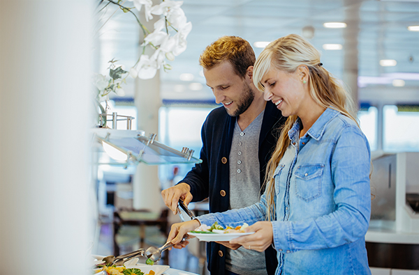 Mit einem Shuttlebus fährst Du direkt vor das Kreuzfahrtschiff. Die Größe der Fähre lässt Dich staunen. In See stecht Ihr vom Rostocker Hafen aus. Das Ziel ist Gedser in Dänemark. Euer Fahrzeug ist eine 169 Meter lange Hybridfähre, die teilweise mit Strom angetrieben wird. Auf der Hinfahrt bedienst Du Dich im Bordrestaurant an einem köstlichen Mittagsbuffet und Getränken, so viel Du möchtest. Die Reiseleitung betreut Dich während der gesamten Fahrt.