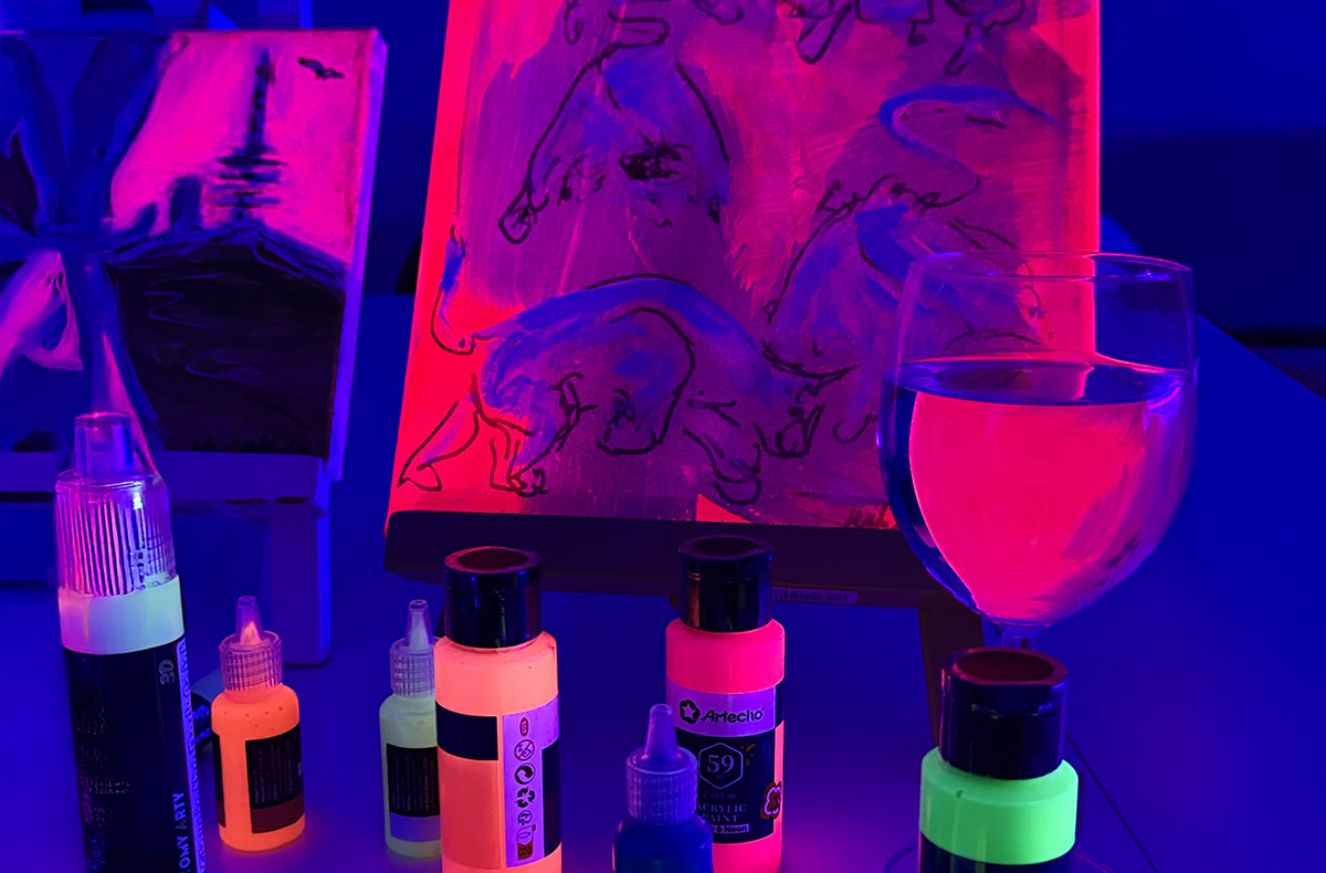 Malen im Schwarzlicht bringt Farbe in gemeinsame Zeit und schafft wertvolle Erinnerungen. Im liebevoll gestalteten Atelier in Waltershausen entstehen unter UV-Licht Kunstwerke mit beeindruckenden Leuchteffekten. Die fluoreszierenden Farben verwandeln jede Leinwand in ein Unikat. Inspiration liefern bekannte Künstler, während ein erfahrener Kursleiter dabei hilft, eigene Ideen umzusetzen. Die besondere Atmosphäre macht Painting in the Dark zu einer kreativen Erfahrung, die lange in Erinnerung bleibt.